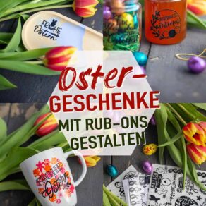 Rub-on Sticker könnt ihr auch auf Papier kleben, je nach Hersteller ist das aber nicht ganz so einfach. Wenn ihr den Sticker zu fest aufrubbelt, kann er am Papier kleben bleiben. Am besten funktioniert es mit leicht beschichteten Etiketten oder wenn ihr den Sticker nicht so fest andrückt. Probiert es am besten aus, bevor ihr die Etikette auf das Glas klebt! Alternativ könnt ihr den Rub-on Sticker direkt auf das Glas kleben (hier bei den Ostergeschenken mit Rub-on Stickern seht ihr dafür ein Beispiel) oder die Etikette von Hand beschriften.