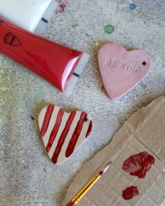 - Wenn die Herzen trocken sind, könnt ihr sie mit Acrylfarbe bemalen.